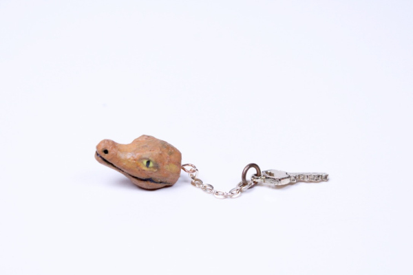 Snakeskin handbag, polymer clay, leather, acrylic paint and pastels, 2023